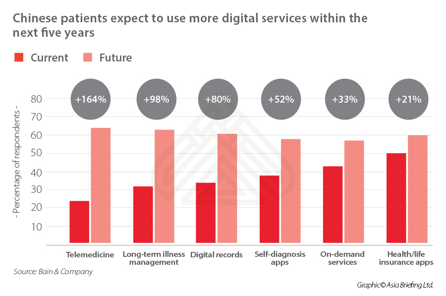 According to a survey conducted by Bain & Company, Chinese patients are much more open and indeed expectant of higher uses of digital health services within the next five years.