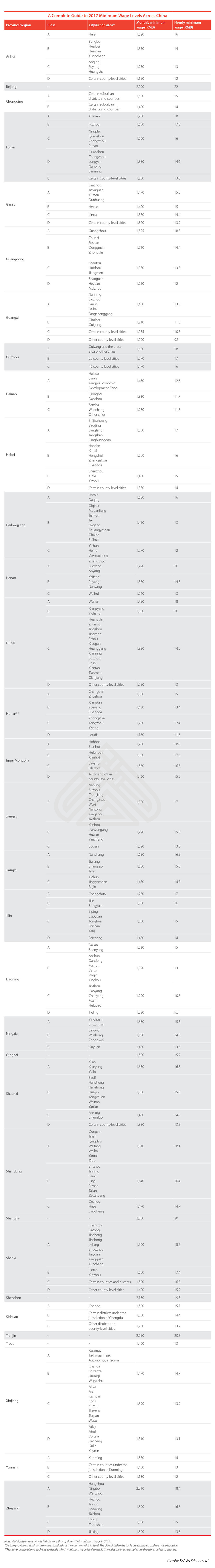 A Complete Guide to 2017 Minimum Wage Levels Across China
