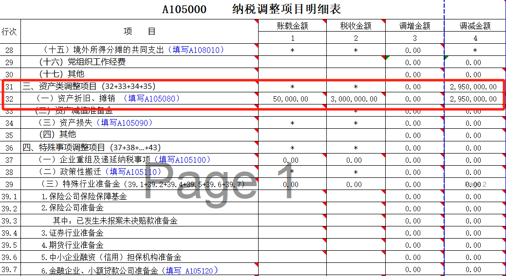 - Line 3: Report the tax adjustment amount, which is -RMB 2.95 million. This reflects the difference between accounting depreciation and the one-off tax deduction.