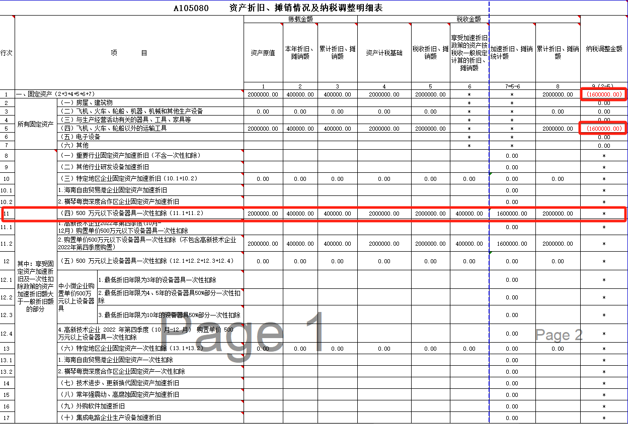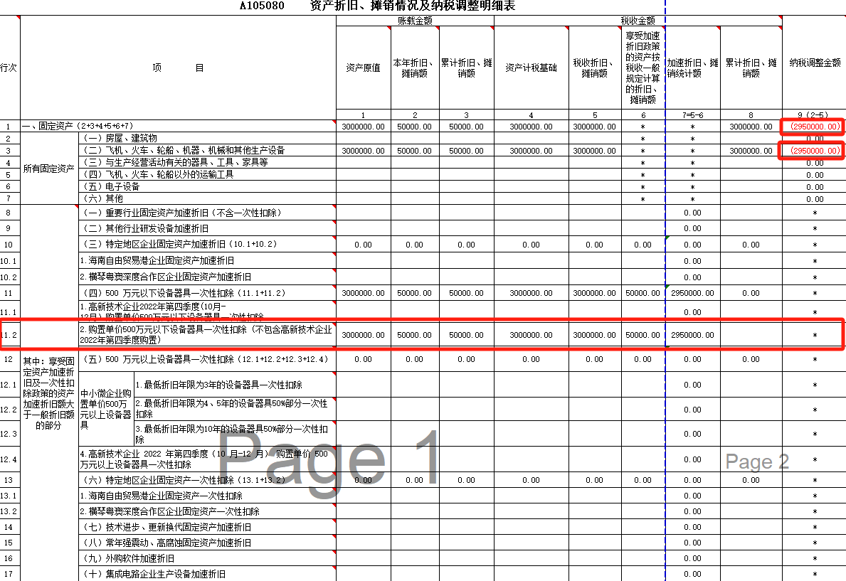 In other words, taxpayers only need to complete line 11 in years when they acquire new qualifying fixed assets (under RMB 5 million) that are eligible for the one-off deduction. In subsequent years, this line should be left blank unless similar new purchases occur.