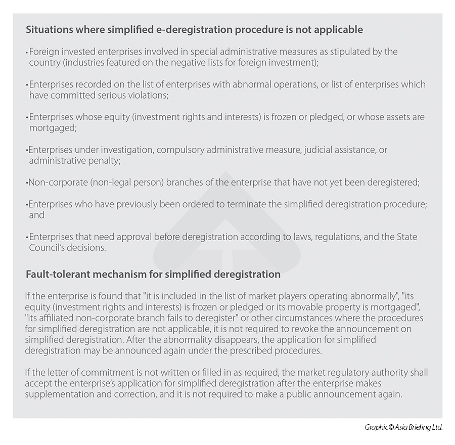 Compared with the normal deregistration process, the simplified deregistration procedures can reduce the time and cost of market exit.