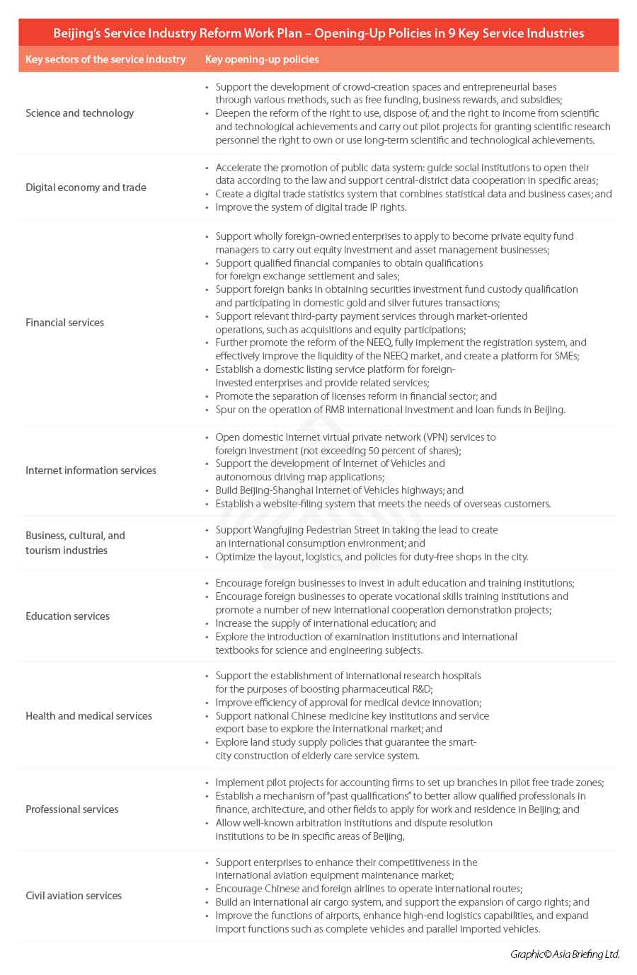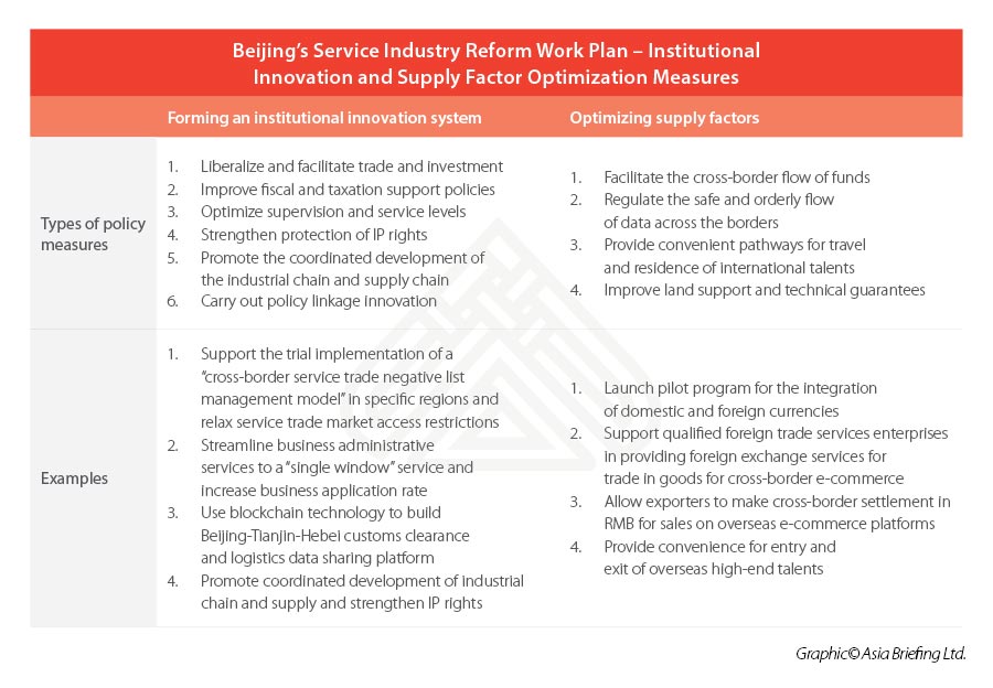 - China’s services sector is steadily improving its market accessibility, most demonstrably through new reforms targeting key industries in Beijing.