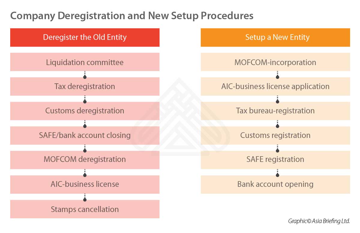 Under this strategy, the company needs to go through all the incorporation procedures again, and it cannot retain the same company name — all commercial contracts need to be re-signed.