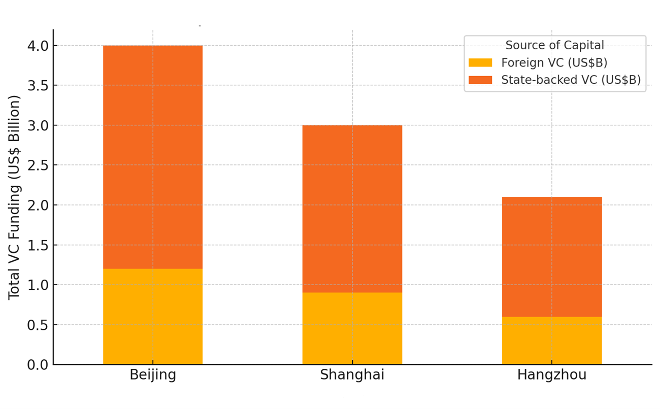 At the same time, the sustained venture capital activity in Chinese tech hubs points to long-term growth potential. While the volume of foreign capital has declined, local investment remains active, especially in areas prioritized by industrial policy, such as semiconductors and AI. Foreign investors may explore joint ventures, minority investments, or co-investment arrangements. With state-backed capital now dominating VC flows in major hubs like Beijing, Shanghai, and Hangzhou, these models offer a practical path forward.