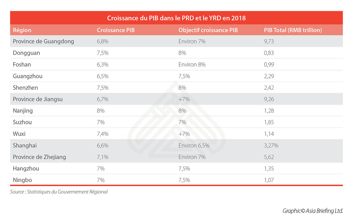 Que disent ces données sur les perspectives des puissances économiques traditionnelles de la Chine – le Delta de la Rivière des Perles (PRD) et le Delta du Fleuve Yangzi (YRD) – en 2019 ?