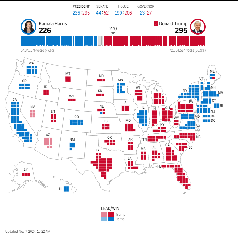 Donald Trump ganó las elecciones presidenciales estadounidenses de 2024, convirtiéndose en el 47º presidente el miércoles 6 de noviembre de 2024.
