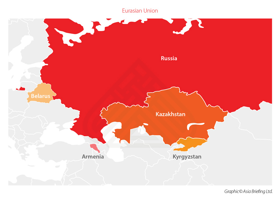 It’s a similar “in progress” story across Eurasia, where the two competing blocs are Brussels and Moscow. Moscow is the leading partner in the Eurasian Economic Union, which includes Armenia, Belarus, Kazakhstan, Kyrgyzstan, and Russia itself. While that might sound an unlikely grouping, it wields real geopolitical influence as it effectively covers a land mass that stretches from China to the borders of the EU.