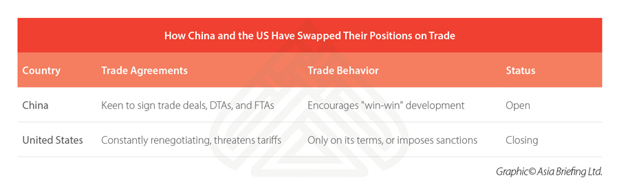 This re-balancing is also something we have seen within Dezan Shira & Associates. Although we have a significant US client portfolio, we are not experiencing that many issues. Clients engaged in China trade have been evolving. Our firm has clients from some 70 different countries – and 69 of them do not have tariff disputes with China. China-ASEAN bilateral trade is up 4.2 percent year-on-year and hit US$293 billion in the six months to June 2019, while ASEAN became China’s second largest trade partner during that time. What is taking place is effectively an American decline. US products and services being sold to China are gradually being replaced by those from Eurasia.