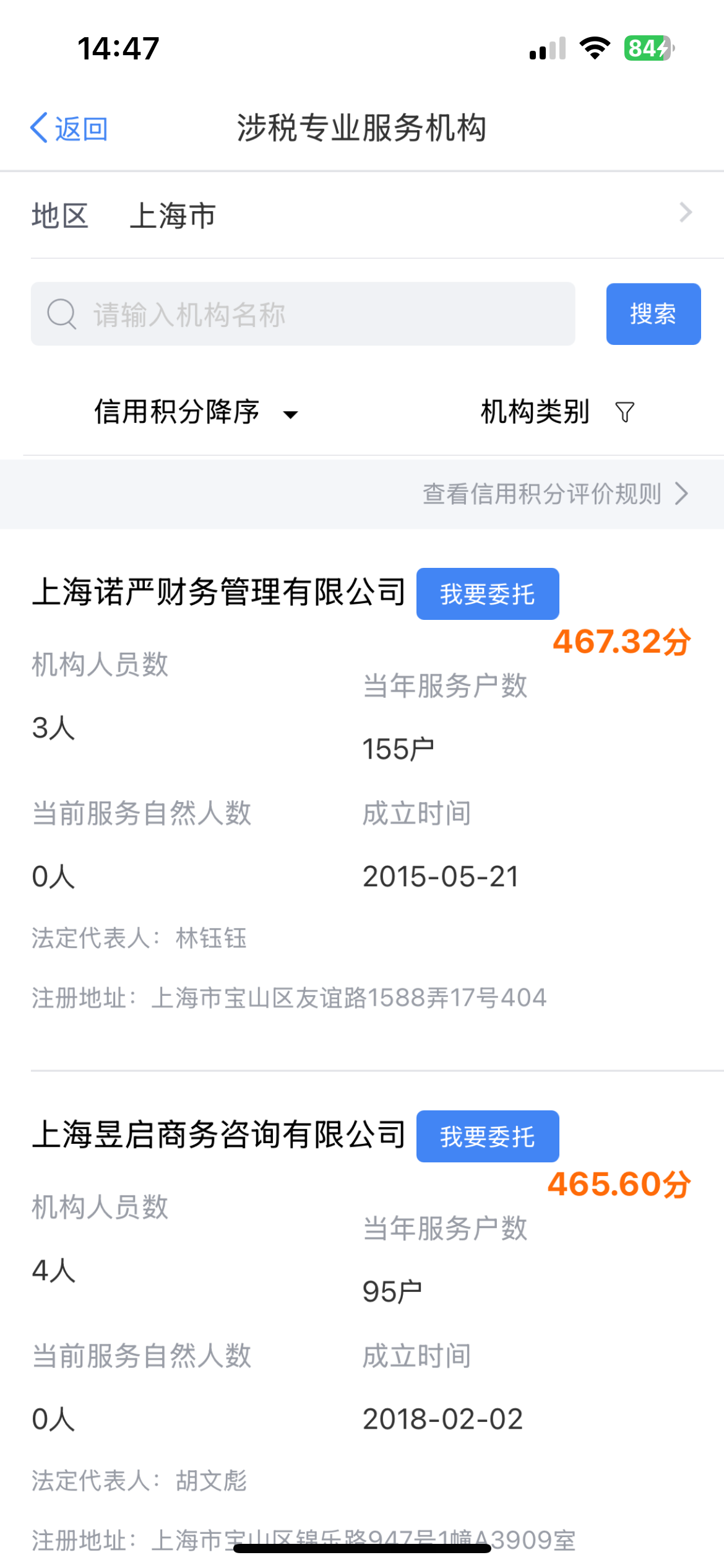 | Credit Score of Tax-related Professional Service Institutions | |