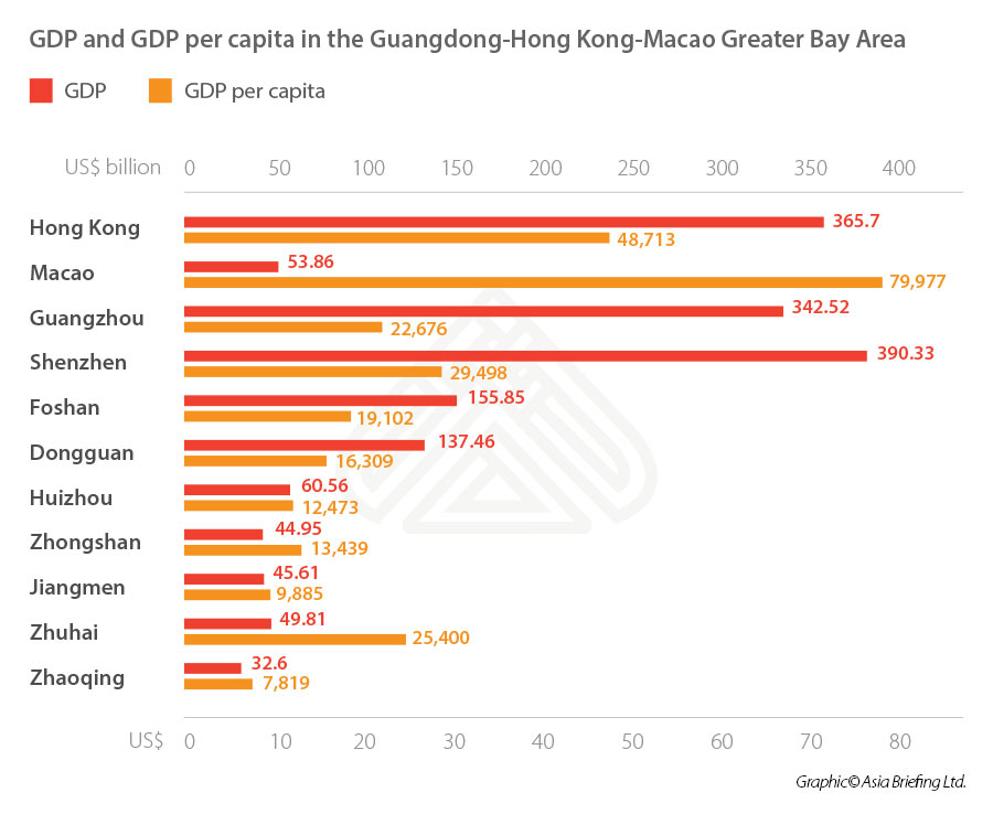GDP and GDP per capita in the Guangdong-Hong Kong-Macao Greater Bay Area