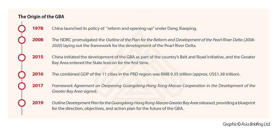 Released in 2019, The Outline Development Plan for Guangdong HK Macao Greater Bay Area (“the GBA Outline Development Plan”) is a blueprint to transform the Pearl River Delta (the PRD) from the factory of the world to a global center for advanced manufacturing and innovation, financial services, transport and logistics, trade, and tourism and leisure.
