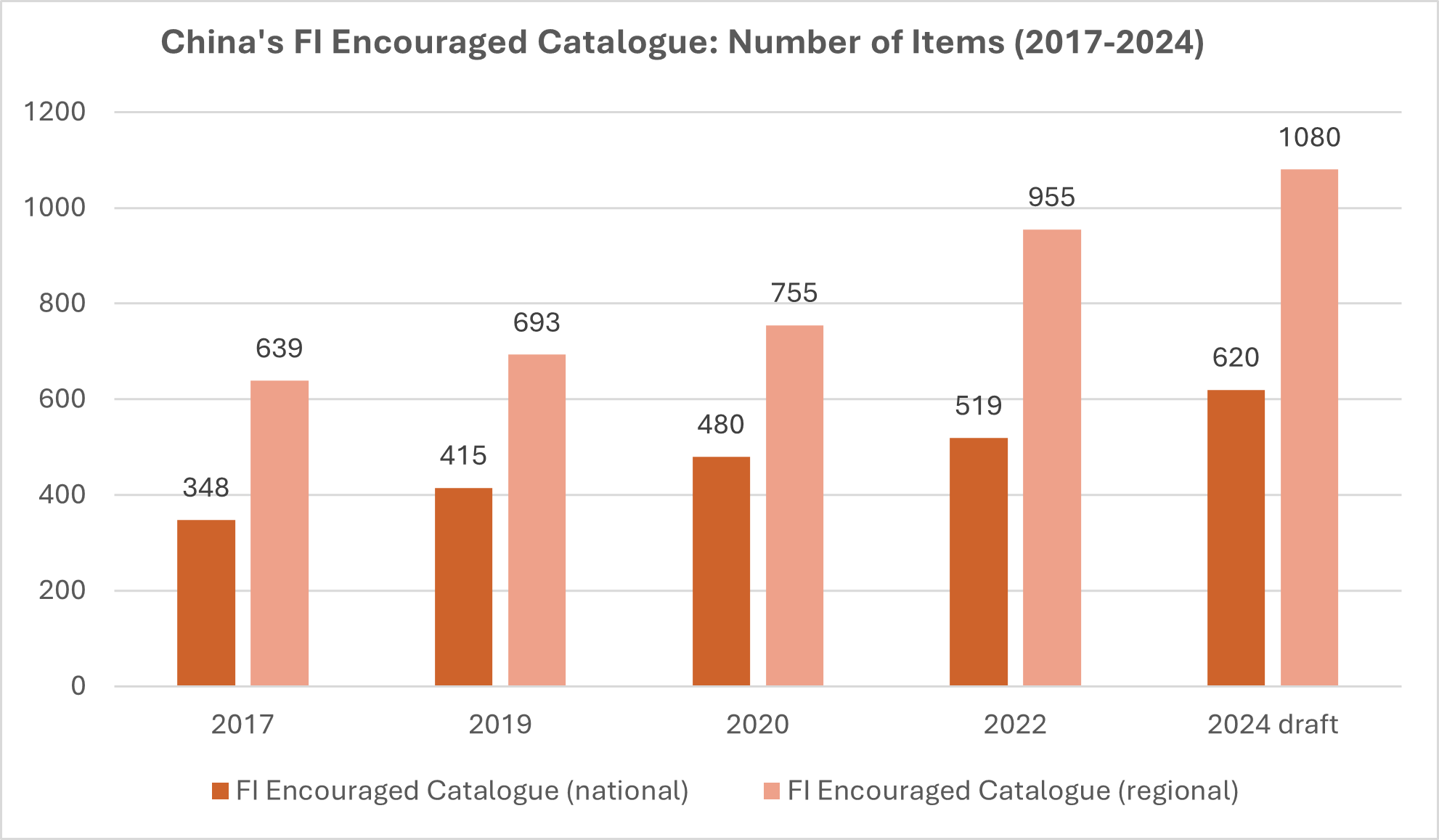 The newly released 2024 Draft FI Encouraged Catalogue contains a total of 1,700 items (620 in the national catalogue and 1,080 in the regional catalogue), increased by 15 percent from 1,474 items (519 in the national catalogue and 955 in the regional catalogue) in the 2022 version.