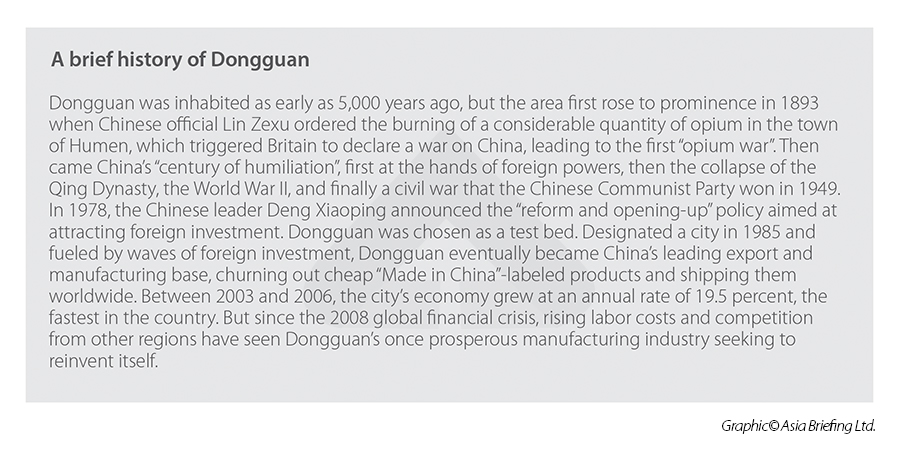 In this city profile, we highlight key factors that make investing in Dongguan a viable option for foreign enterprises seeking to set up in China. The city's history traces a journey from being a cheap export-oriented manufacturing base to developing high-tech strengths. In many ways, the story of Dongguan reflects the transformation of the modern Chinese economy.