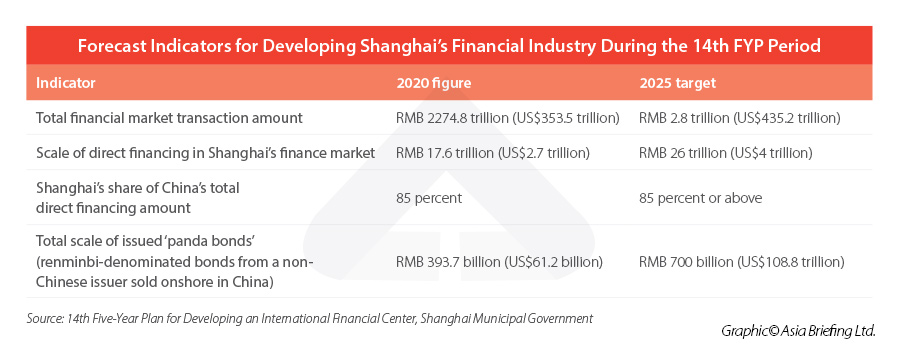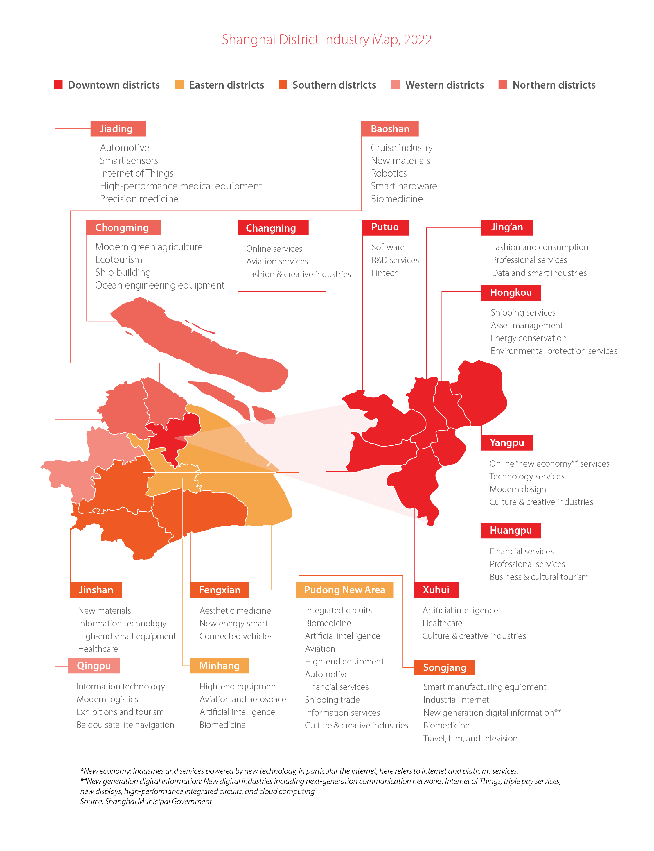 The future trajectory of Shanghai’s economy will lean heavily toward developing the services sector, in particular finance and technology, as well as advanced and high-end manufacturing.Building on its position as a leading financial and tech hub, Shanghai has rolled out several development roadmaps and policy incentives to boost the growth of these strategic sectors. Notable examples include the 14th Five Year Plan for Building a Science and Technology Innovation Center with Global Influence (Science and Technology 14th FYP), and the 14th Five-Year Plan for Developing an International Financial Center (Finance 14th FYP).